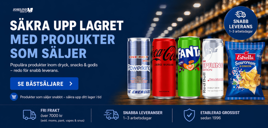 Vi är särskilt starka inom dryck, godis, chips, snacks, choklad, vapes och nikotinpåsar – alltid med snabb leverans, bra priser och ett uppdaterat sortiment.