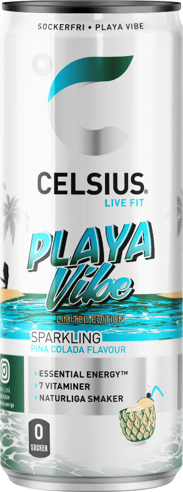 Celsius Playa Vibe 355ml är en sockerfri funktionsdryck som kombinerar tropisk smakprofil med uppiggande ingredienser. Drycken innehåller koffein, vitaminer och grönt te-extrakt och är perfekt för aktiva konsumenter som söker ett friskt och fruktigt alternativ till traditionell energidryck.