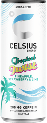 Celsius Tropical Twist är en uppfriskande vitaminrik energidryck. Kommer i en härlig frisk tropisk smak och är helt sockerfri.