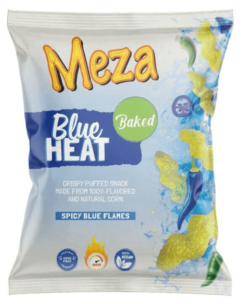 Meza Chips Blue Heat 135g är starkt kryddade majschips med intensiv hetta och en djupblå färg som gör dem till en iögonfallande snackfavorit. Med sin unika färg och kryddstarka smakprofil attraherar de framför allt en yngre publik som söker en utmanande smakupplevelse.