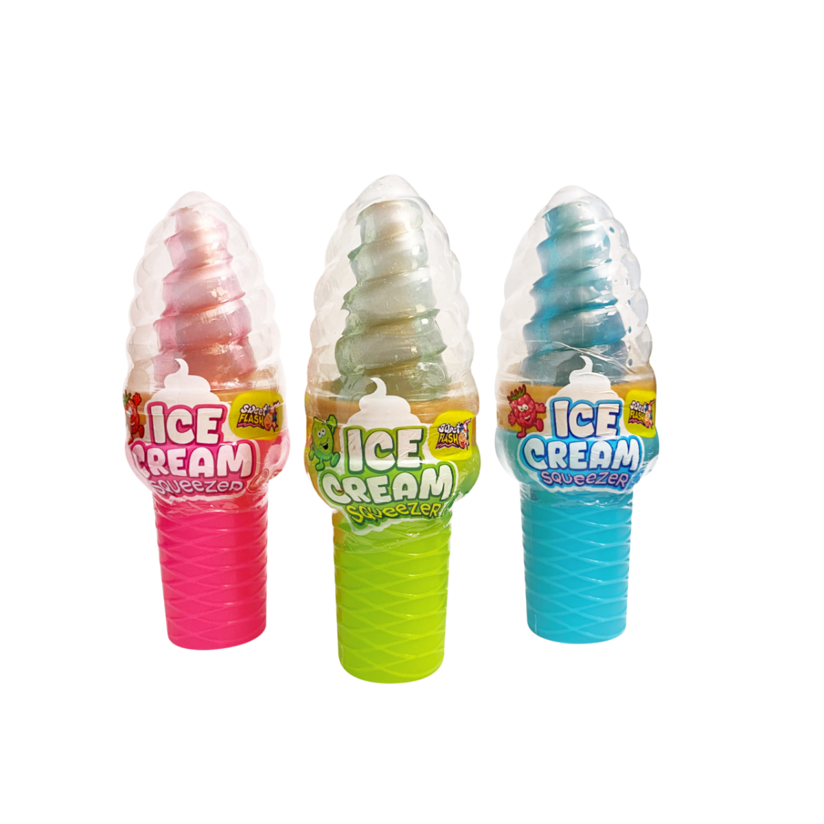 Ice Cream Squeezer 12x52g är ett lekfullt och färgglatt godis i form av glass, fyllt med mjukt och sött gelégodis. Förpackningen kan klämmas för att pressa ut innehållet, vilket gör produkten extra rolig och interaktiv – särskilt populär bland barn och ungdomar.