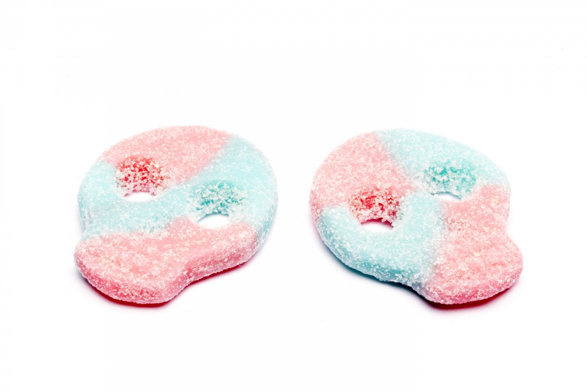 Innehållsförteckning: Socker, glukossirap, stärkelse (majs), vatten, surhetsreglerande medel (äppelsyra E296, mjölksyra E270, citronsyra E330), aromer, salt. Färgämnen: E150 E171.