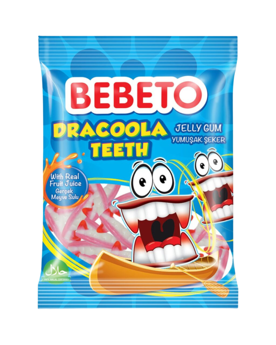 Bebeto Dracoola Teeth 80g - Draculas otroliga tänder som nu kommer i en unik godis smak.