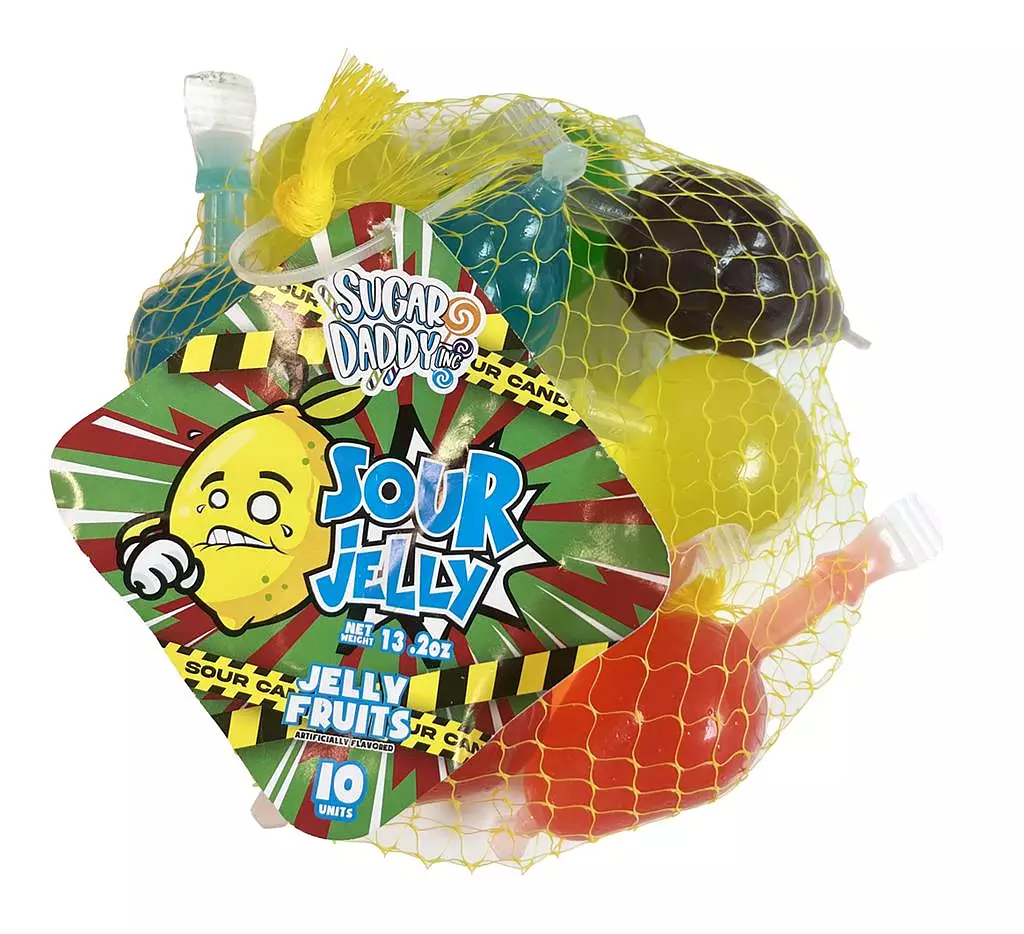 Sugar Daddy Sour Jelly Fruit Påse 24x350g - Sura sockriga godisbitar från Sour Jelly.