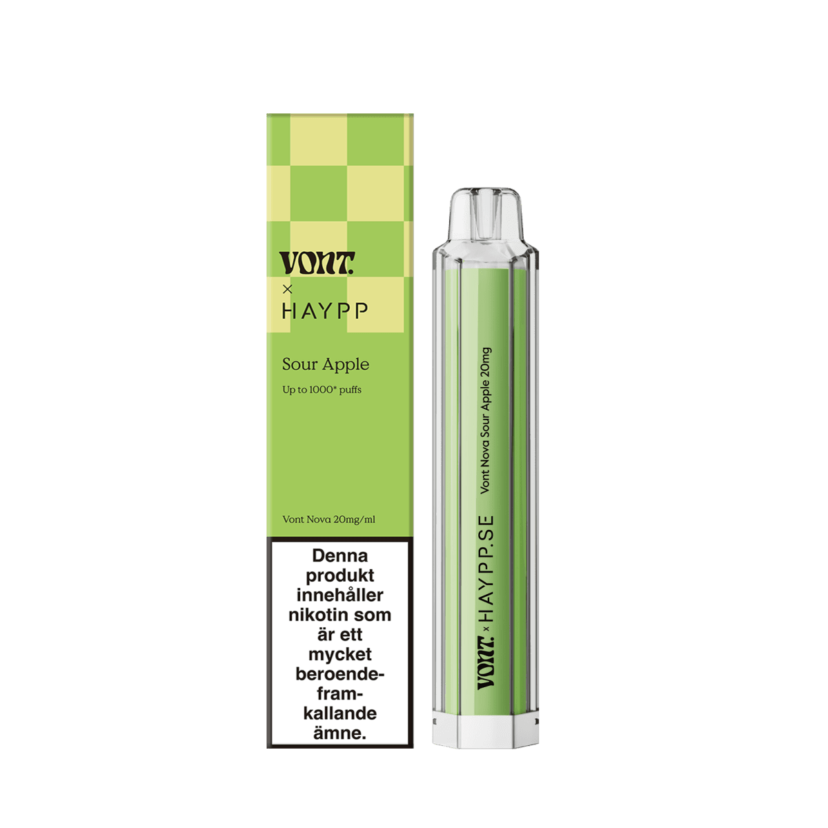 Vont Nova Haypp Sour Apple är en engångsvape med 20 mg nikotin. Smaksatt med Apple för en unik och njutbar vapingupplevelse.